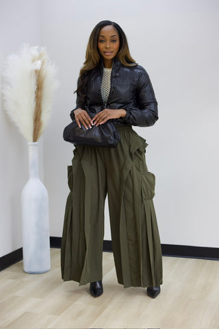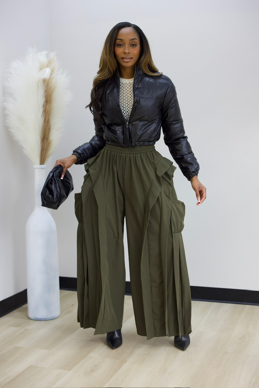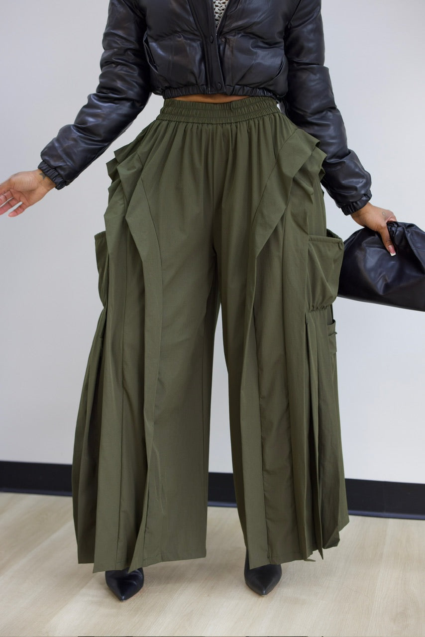 Effortless style meets comfort in these drawstring cargo pants. Featuring a flattering elastic waistband and adjustable drawstring closure, they're designed for all-day wear. Distinctive pleated detailing runs down the sides, adding dimension and movement to your silhouette. With a 32-inch inseam, they hit at the perfect length for a polished look. Ideal for casual outings or relaxed weekend vibes. nylon fabric