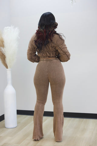 Elevate your casual wardrobe with this chic 2-piece pant set. The all-over ruched jacket features a sleek front zipper for easy layering, while the high-waisted pants showcase a faux drawstring front for a flattering silhouette. Perfect for creating effortless, put-together looks that transition seamlessly from day to night. Comfortable, stylish, and versatile—a modern essential for any closet.