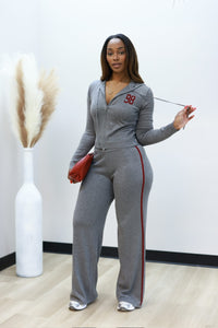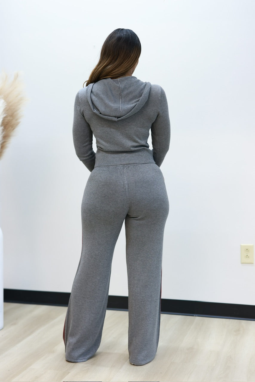 Elevate your casual wardrobe with this cozy knit pant set. Featuring a relaxed-fit pant with sleek side stripes and a matching hooded jacket with a convenient front zipper, this two-piece ensemble offers effortless style and comfort. Perfect for lounging at home or running errands, the soft knit fabric moves with you while the stripe detail adds visual interest. Layer it, mix and match, or wear together for a coordinated look that feels as good as it looks.